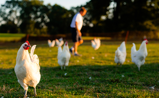 Ici, nous élevons nos volailles comme nos aînés l’ont fait avant nous : à ciel ouvert, nourries de céréales locales et de produits laitiers, avec le plus grand soin, comme l’exige notre tradition.