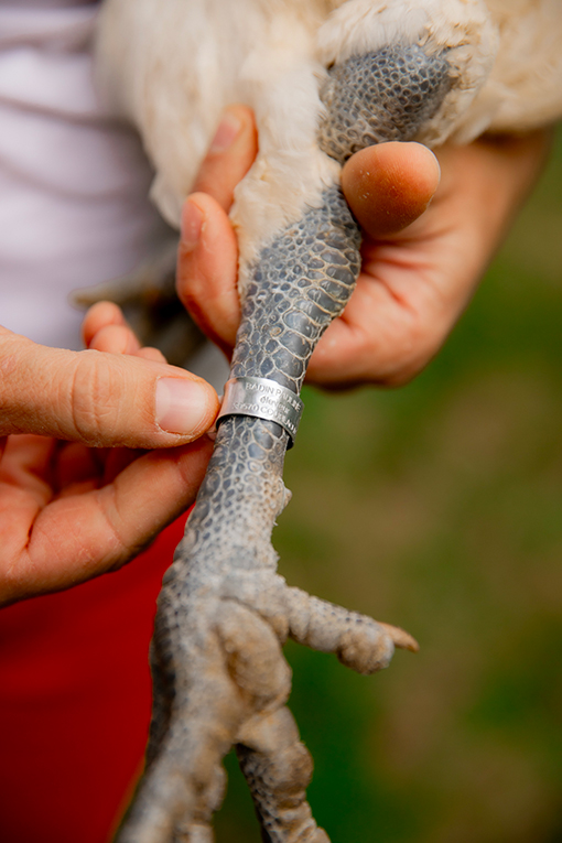 Situé à la base du cou, ce petit clip tricolore assure l’inviolabilité du produit. Il mentionne le nom de l’abatteur ou de l’expéditeur agréé qui a préparé la volaille. C’est la preuve que l’animal a été sélectionné et conditionné selon les règles strictes de l’AOP.