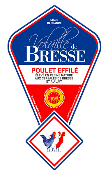 C’est le repère ultime. Ce logo rond, rouge et jaune, est la certification légale que la volaille a été élevée, abattue et préparée en Bresse selon un cahier des charges contrôlé par l’État (INAO) et l’Europe.